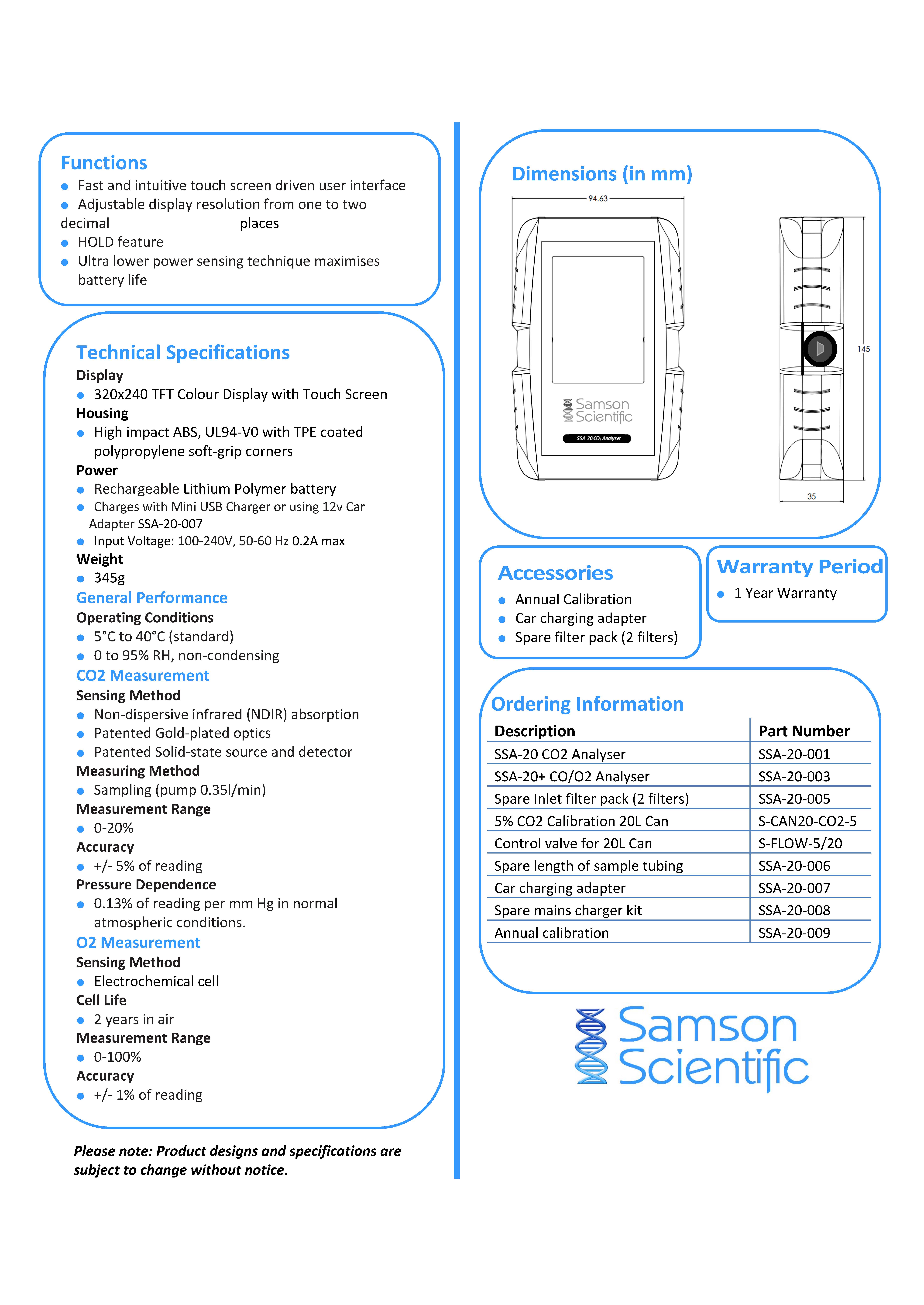 Samson Scientific CO2/O2 Analyser If you would like to order or make an enquiry about any of our products then please contact us: info@gsbiotech.co.uk